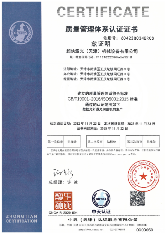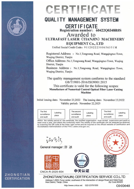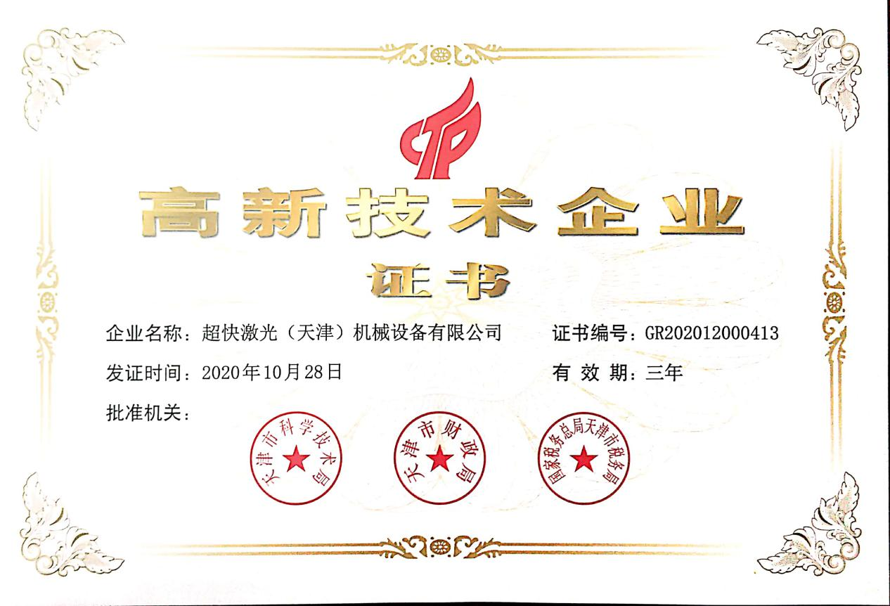 超快激光擁有一支專業(yè)從事激光切割設備研發(fā)設計的強大技術團隊,獲得多項實用型設計專利,已通過ISO9001質量管理體系認證證書,并且獲得國家頒發(fā)的高新技術企業(yè)證書。